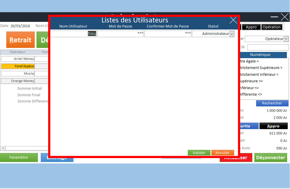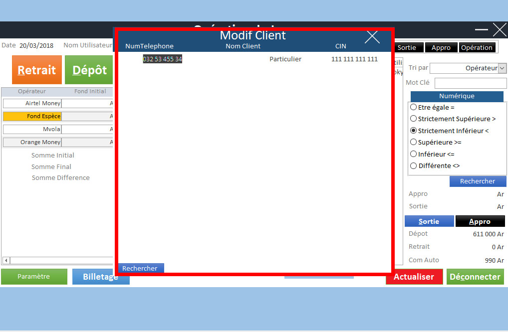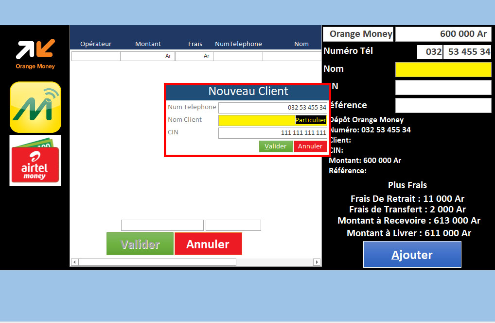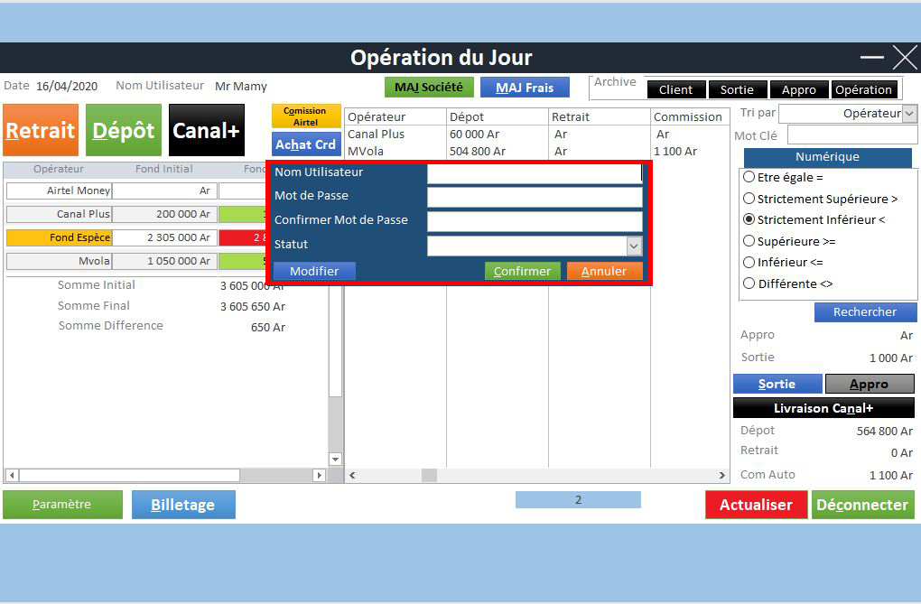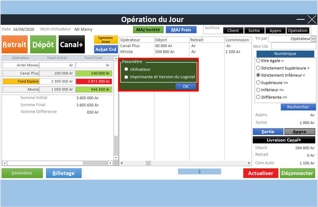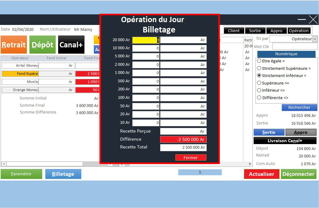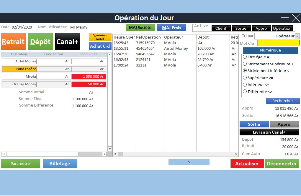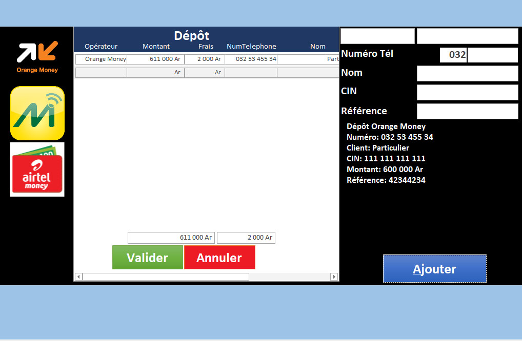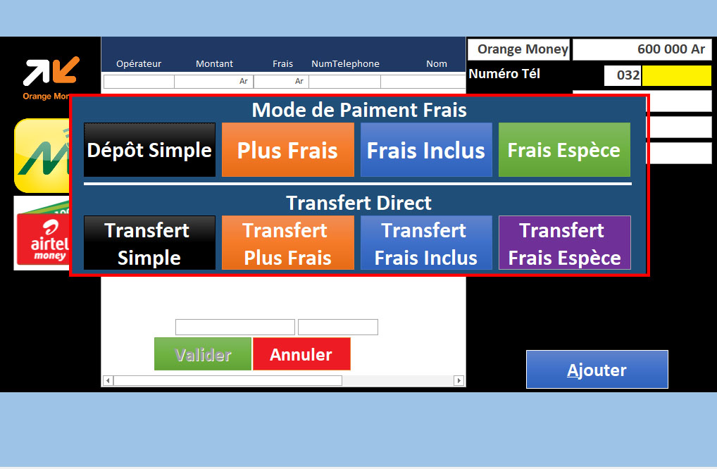 | Gestion des Stocks Virtuel (MVola, Orange Money, Airtel Money) | ✔ | |