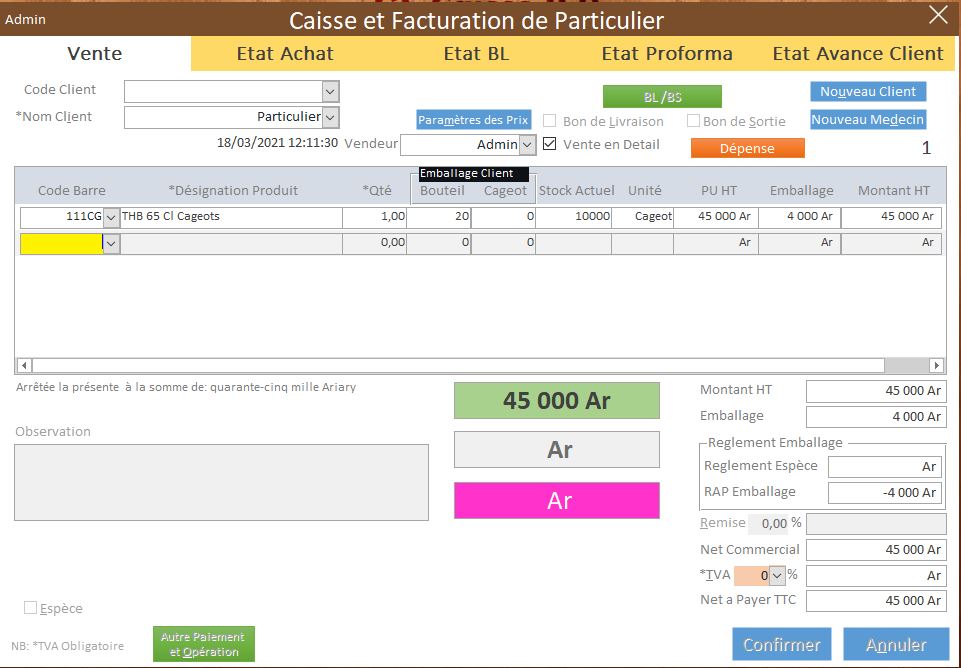| Ouverture & Clôture de Caisse avec Billetage | ✔ |